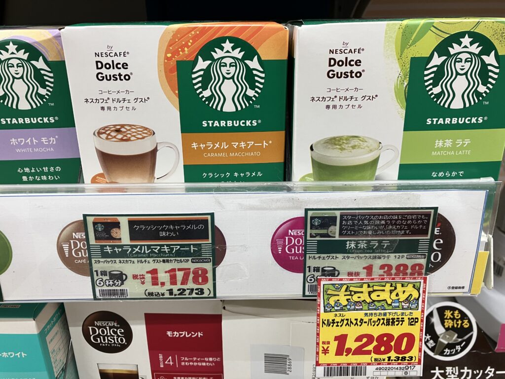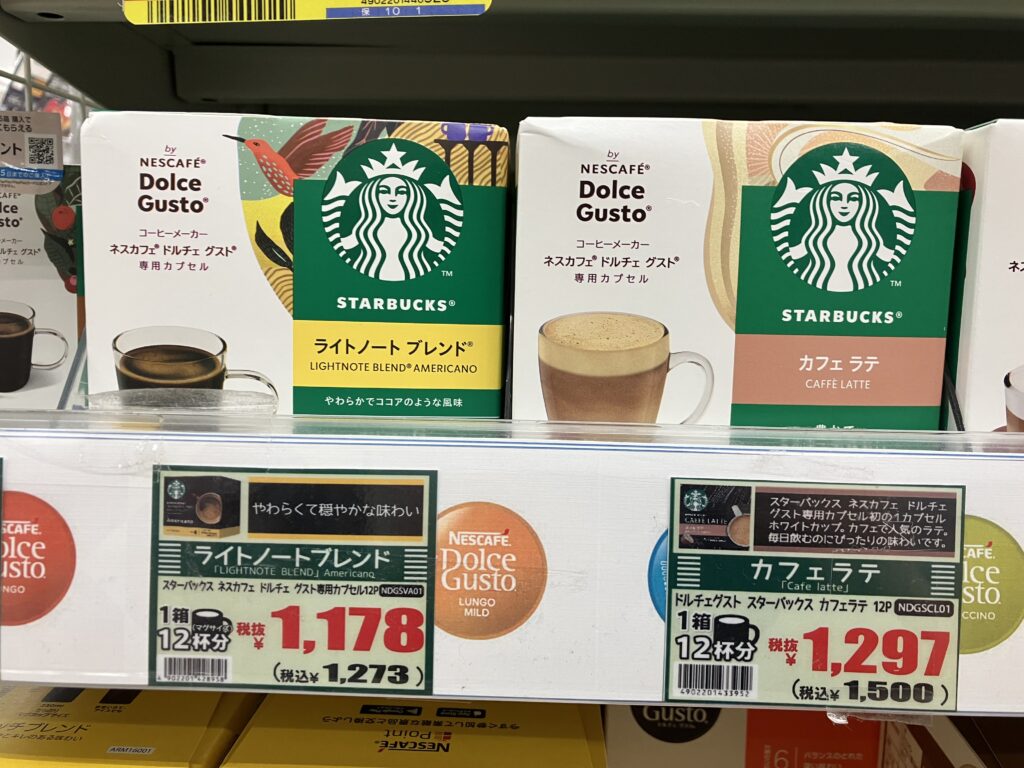 カプセルはスーパーでも売っているのですが、あんまり種類おいてないので、家電屋さんで買うのがいいかもです、種類たくさん置いてますしポイント溜まります。