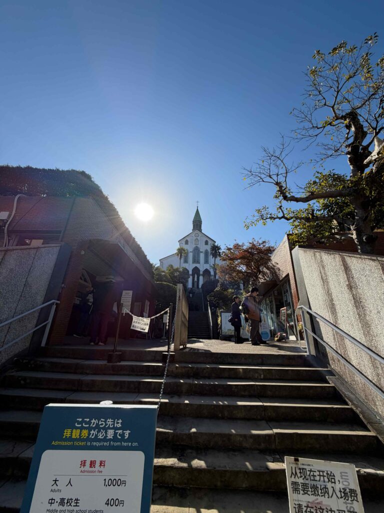 大浦天主堂とグラバー園は隣にあって、歩いてすぐなので車を停めたら歩いてまわったほうが効率いいと思います。横浜みたいな街並みで見どころがかなりありぶっちゃけこの辺りだけで一日使えると思いました、グラバー園はかなり広い敷地で高低差あるのですが長いエスカレーターがあるのでお年寄りでもまわれると思います、すごいです。