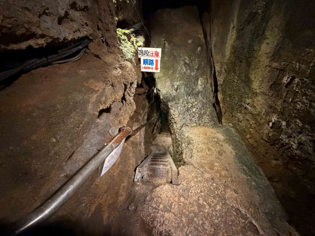 かなり狭い箇所と急な階段があり、鍾乳洞って感じします。
